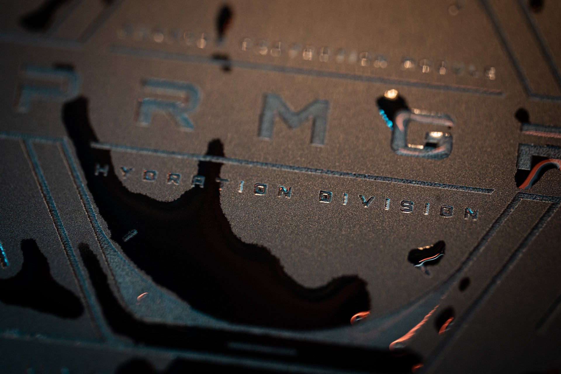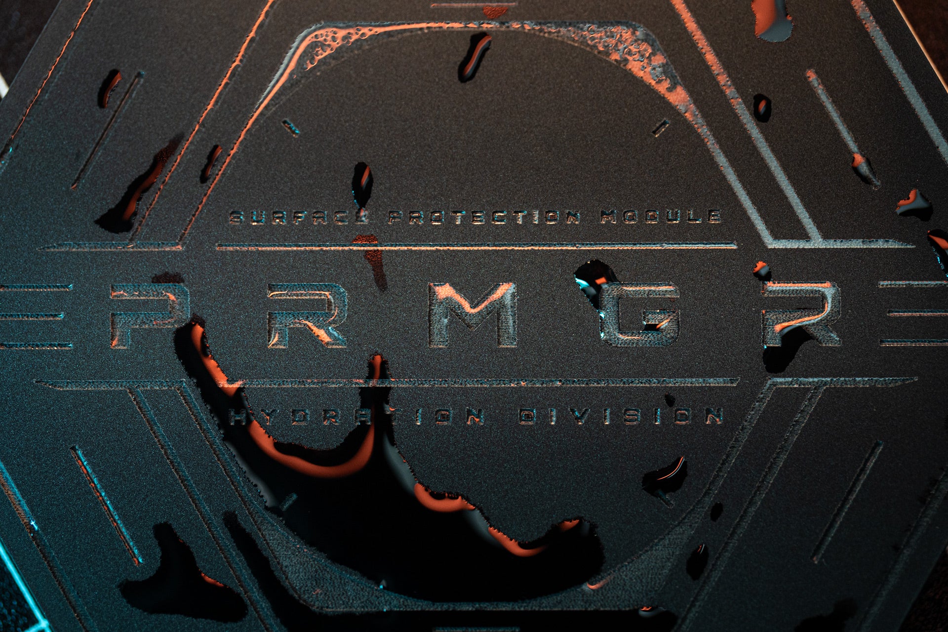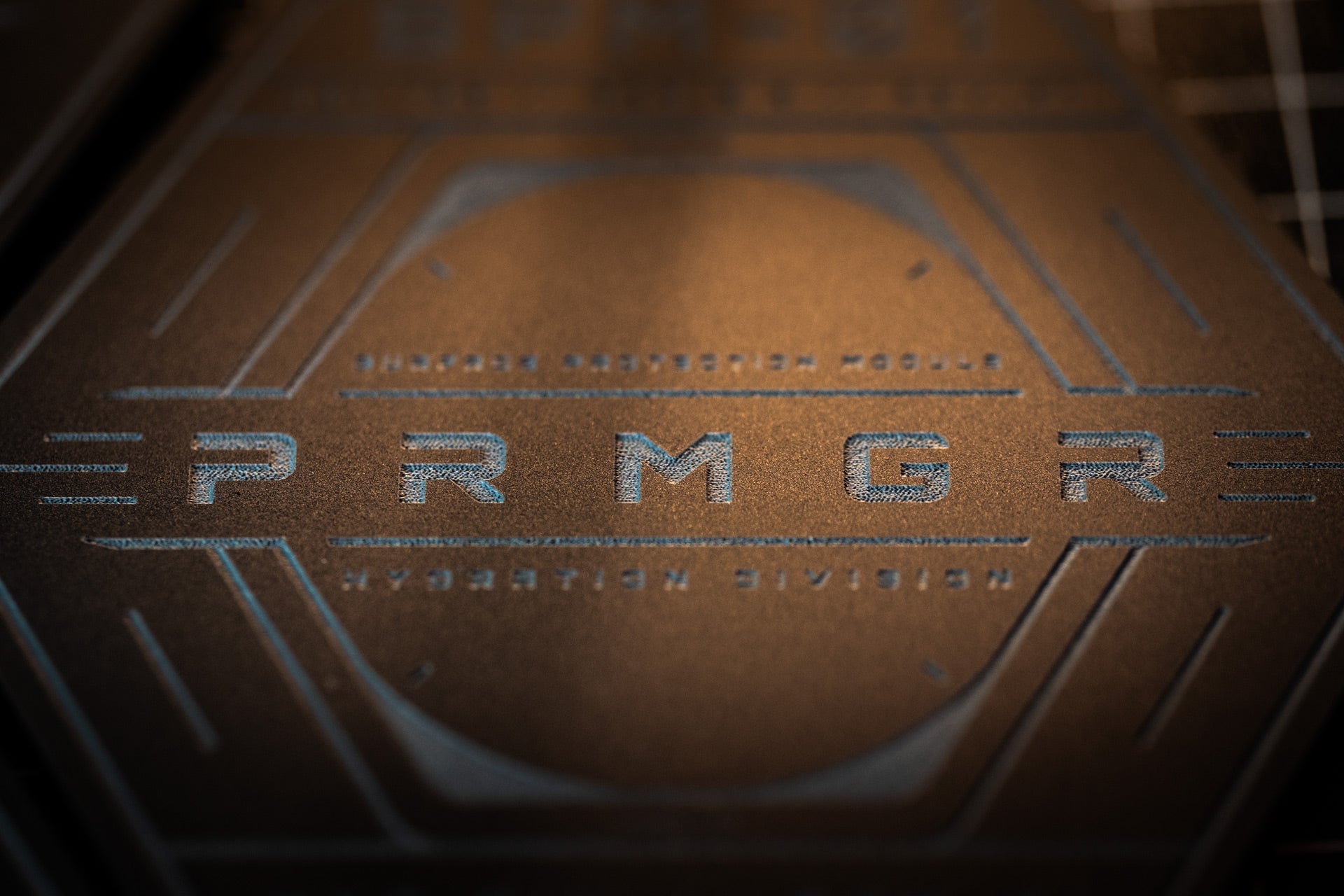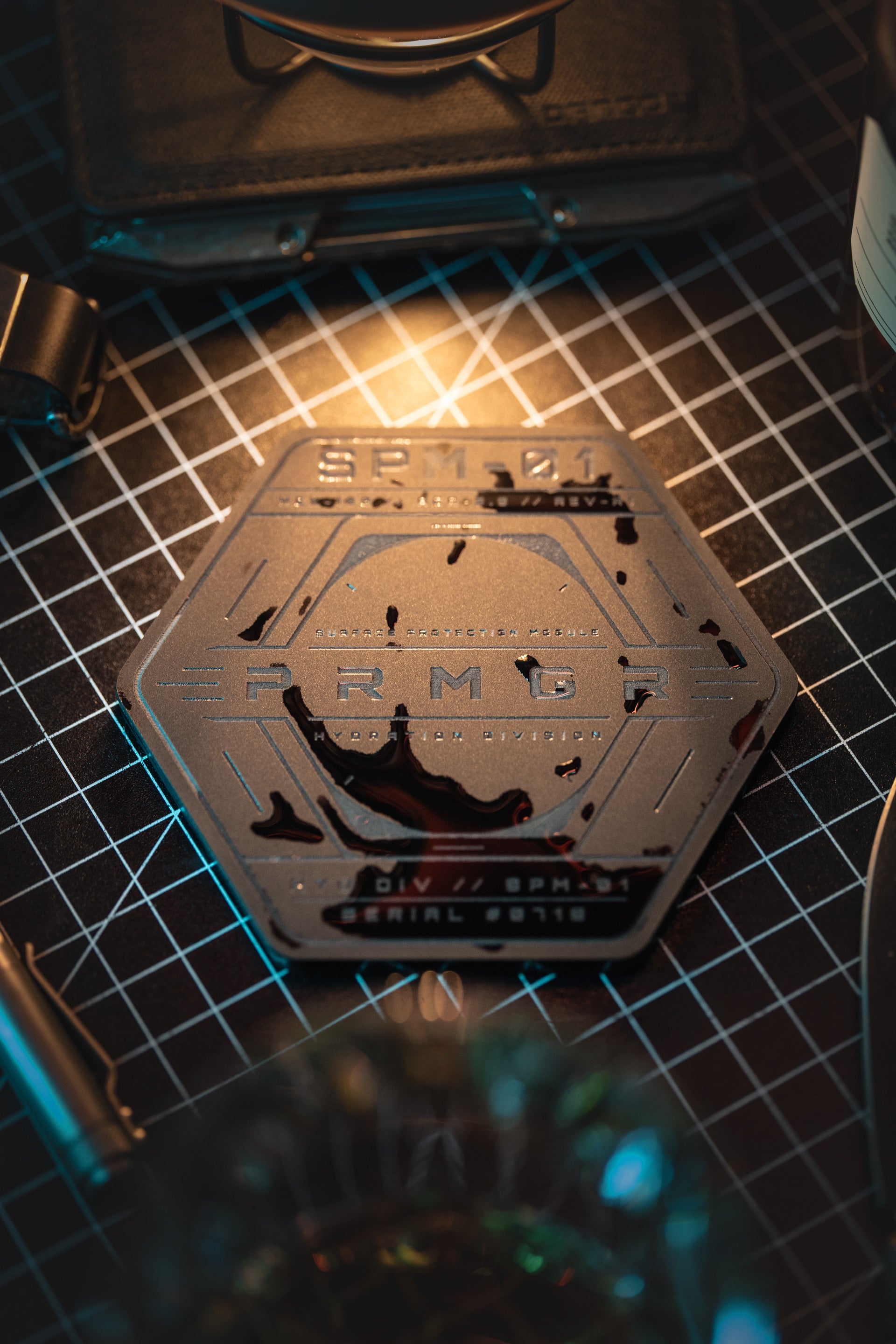 Machined from 5 mm matte acrylic and laser engraved with the PRMGR system interface, each module carries its own identifier within the Hydration Division.