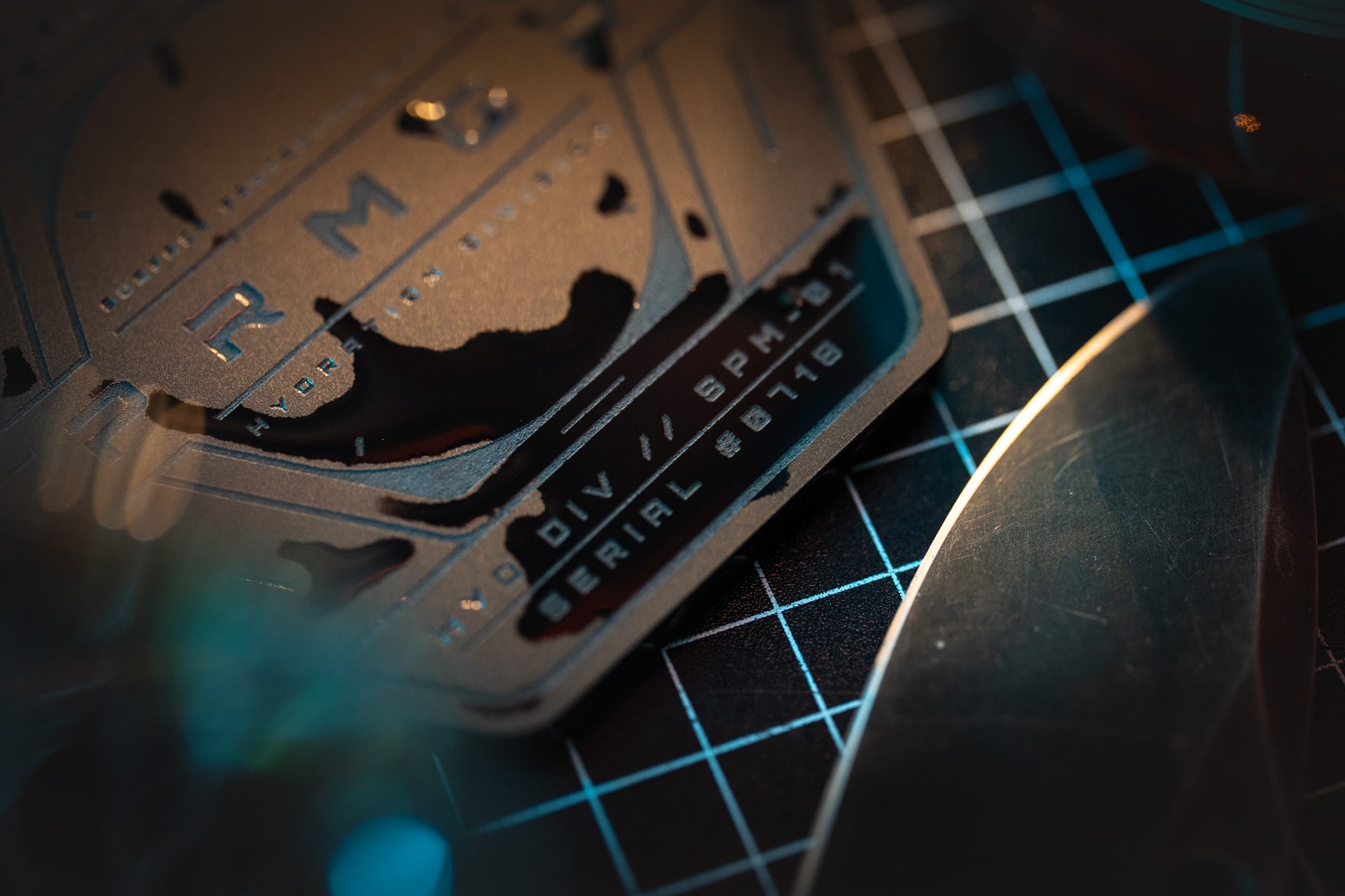 Precision engraved detailing inspired by industrial system panels.